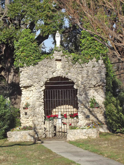 Lourdes grotto next to the church was built by Dionicio Rodriguez.