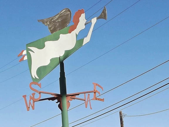 When we turned onto Basse Road we spotted this angel flying close to the ground.